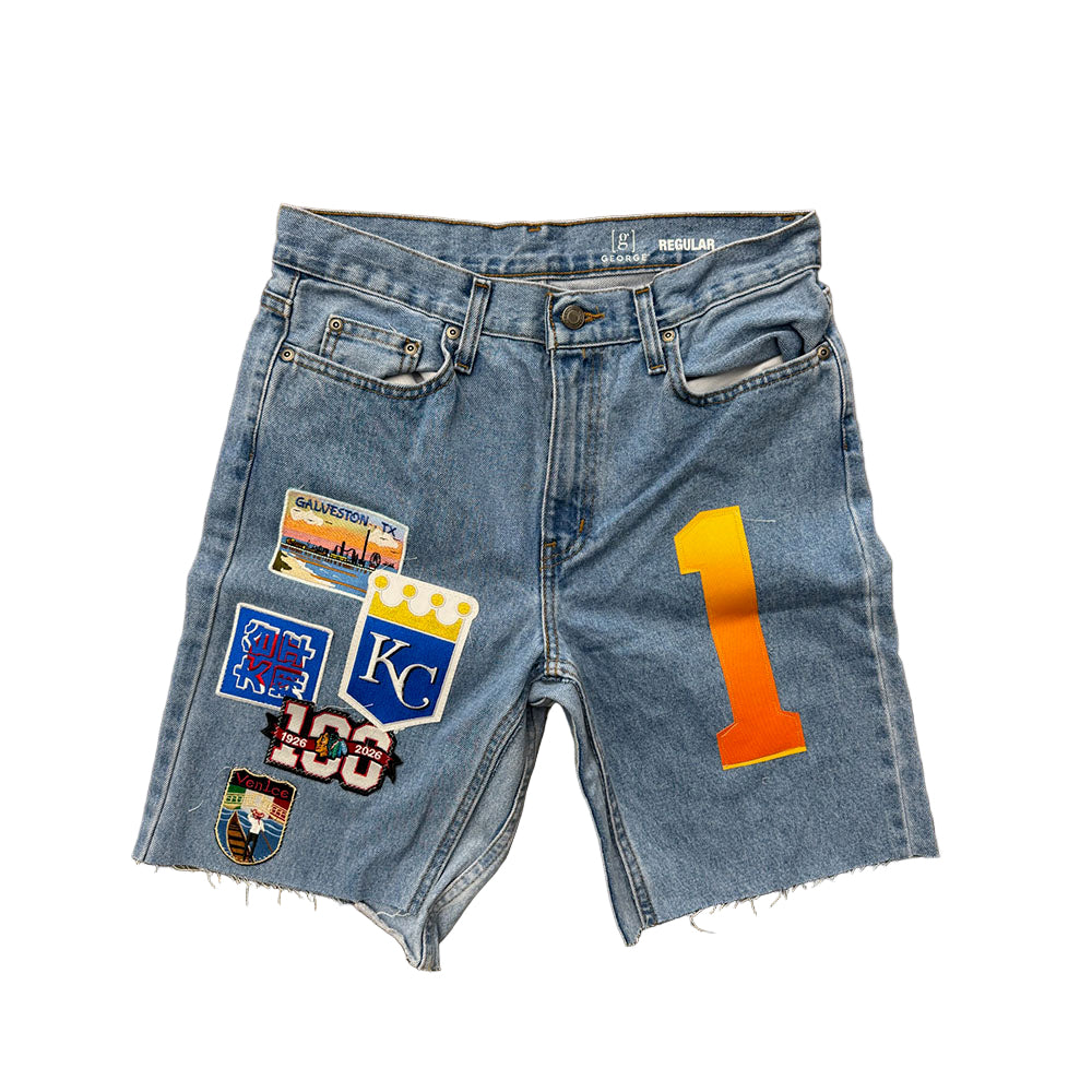 PATCHED ARCH BLOWOUT DENIM SHORT
